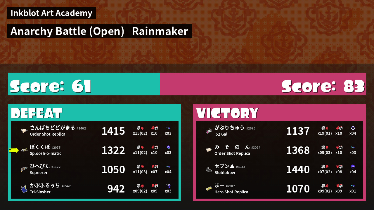 | Mode | Rainmaker - Anarchy Battle (Open) | ||