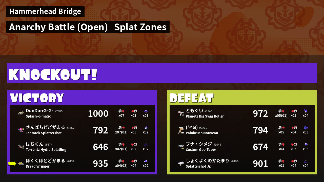 | Mode | Splat Zones - Anarchy Battle (Open) |