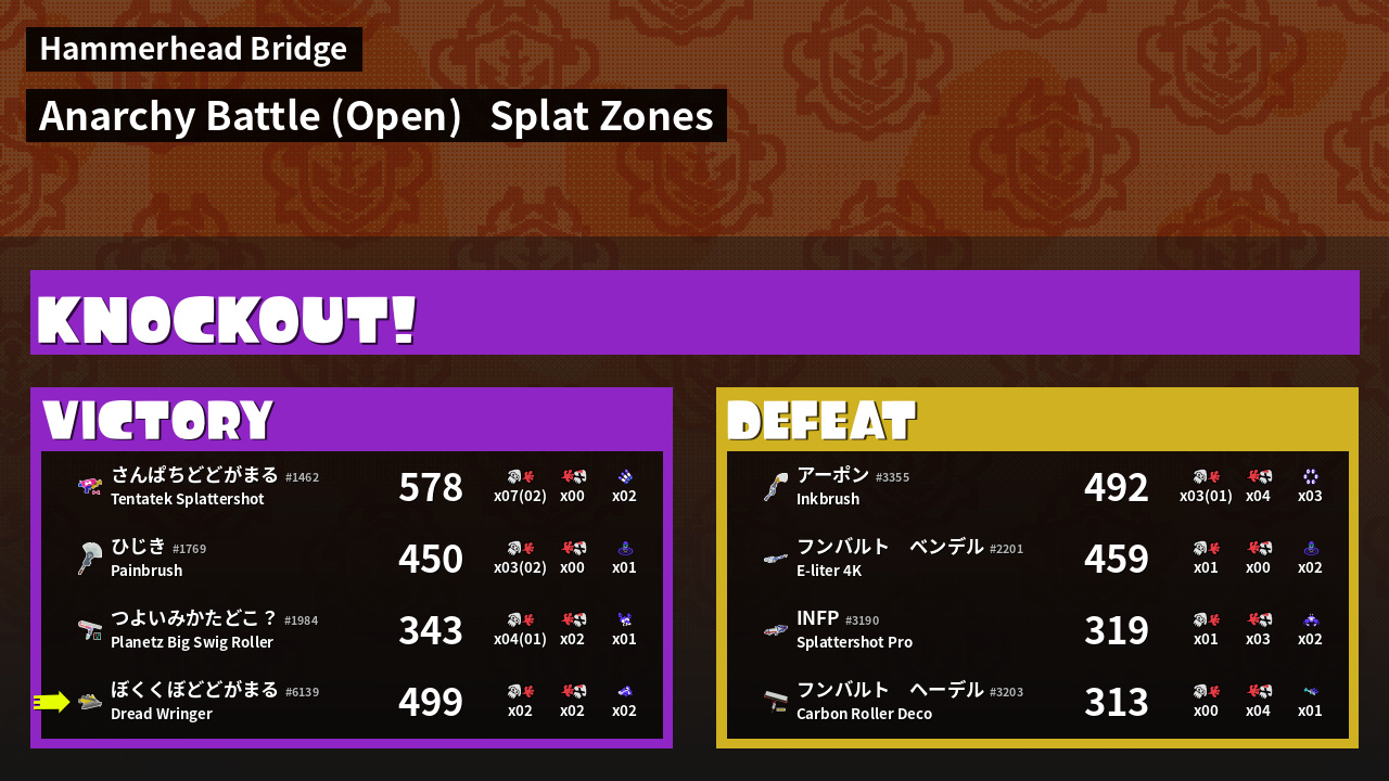 | Mode | Splat Zones - Anarchy Battle (Open) |