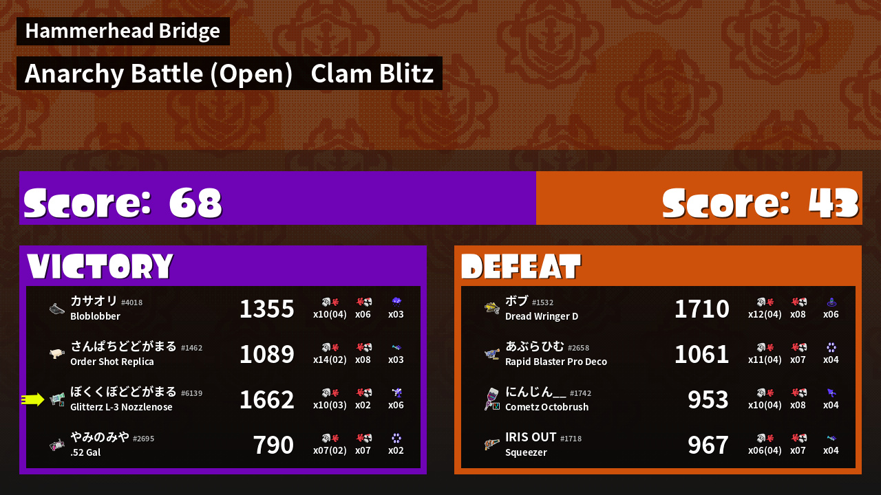| Mode | Clam Blitz - Anarchy Battle (Open) |