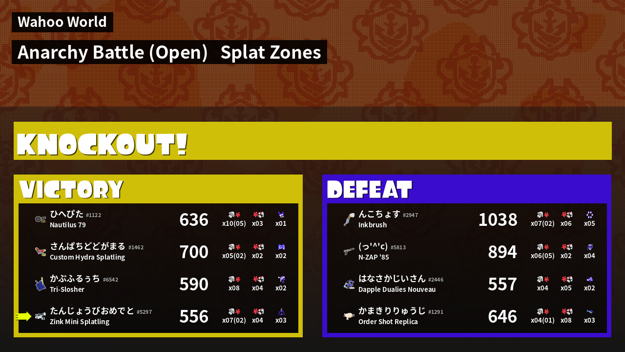 | Mode | Splat Zones - Anarchy Battle (Open) | ||