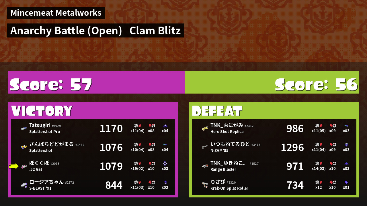| Mode | Clam Blitz - Anarchy Battle (Open) | ||