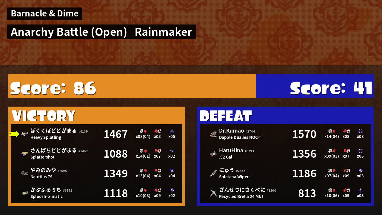 | Mode | Rainmaker - Anarchy Battle (Open) |