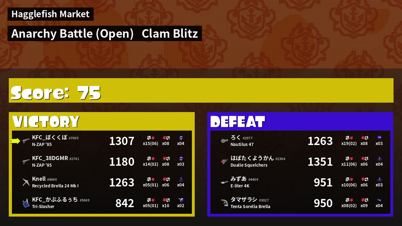 | Mode | Clam Blitz - Anarchy Battle (Open) | ||