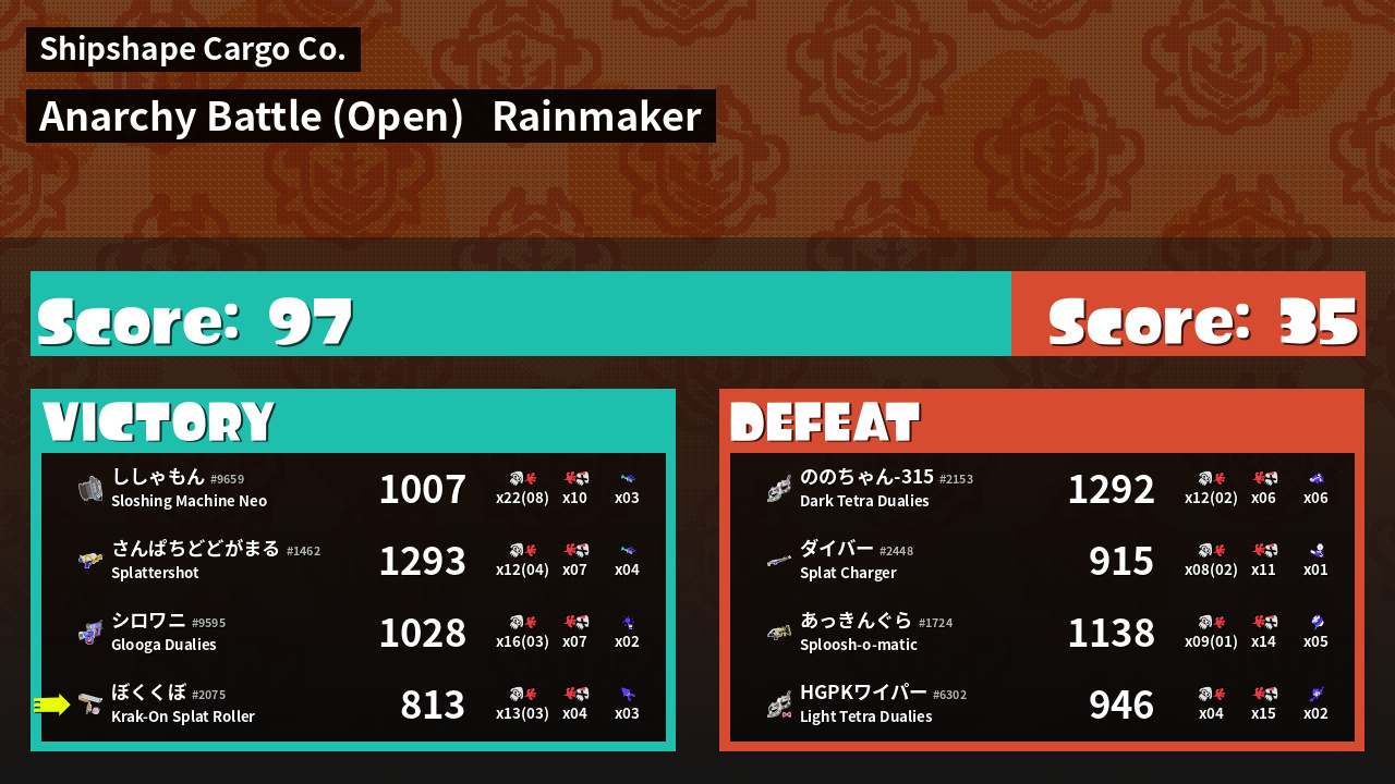 | Mode | Rainmaker - Anarchy Battle (Open) | ||