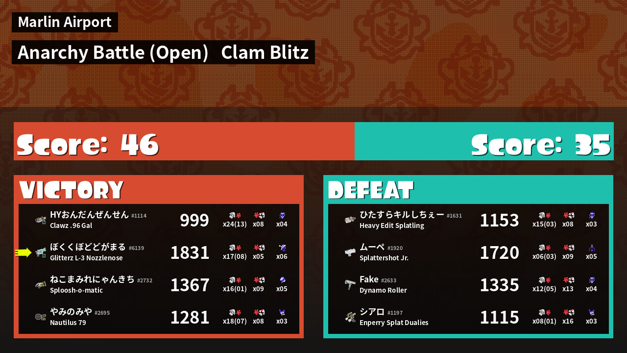 | Mode | Clam Blitz - Anarchy Battle (Open) |