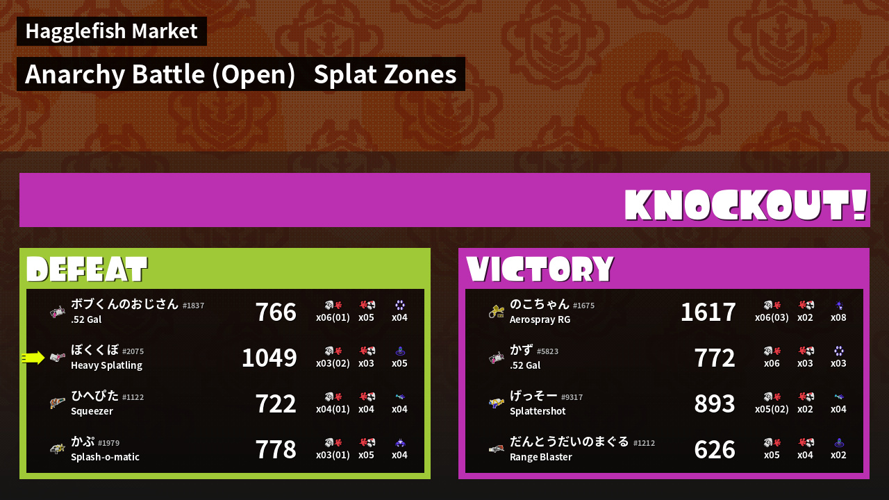 | Mode | Splat Zones - Anarchy Battle (Open) | ||