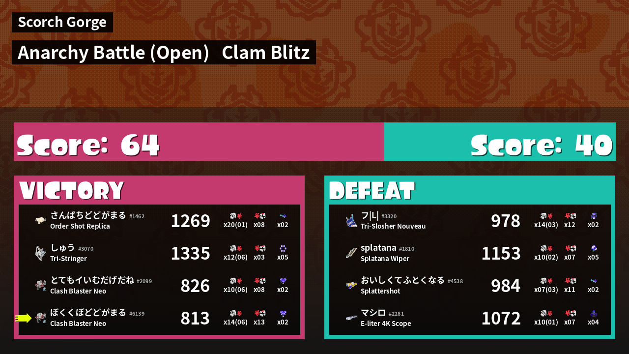 | Mode | Clam Blitz - Anarchy Battle (Open) |
