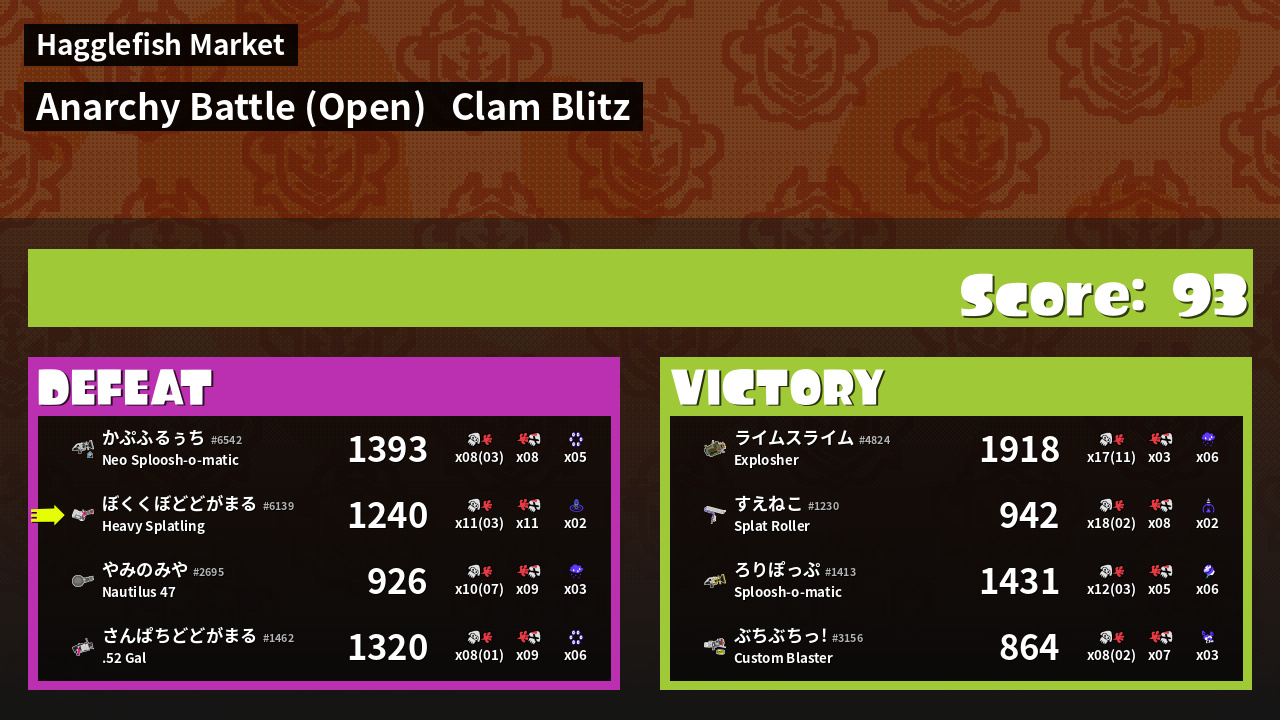 | Mode | Clam Blitz - Anarchy Battle (Open) |