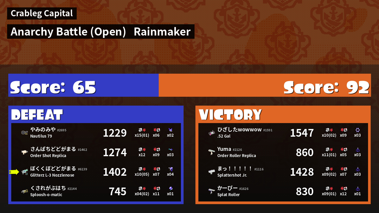 | Mode | Rainmaker - Anarchy Battle (Open) |