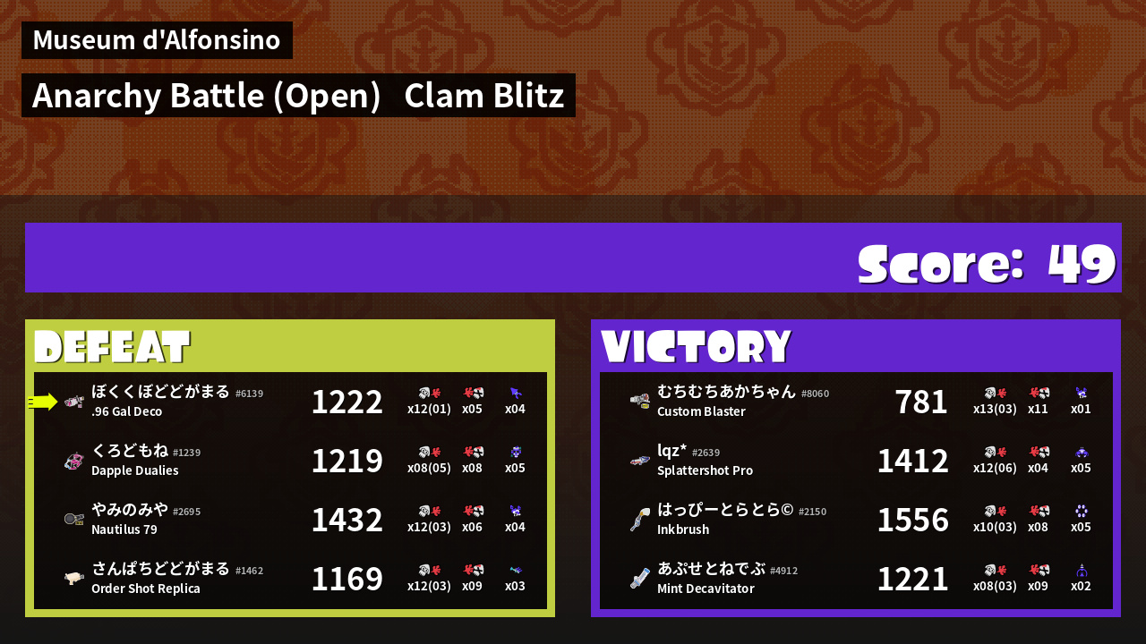 | Mode | Clam Blitz - Anarchy Battle (Open) |