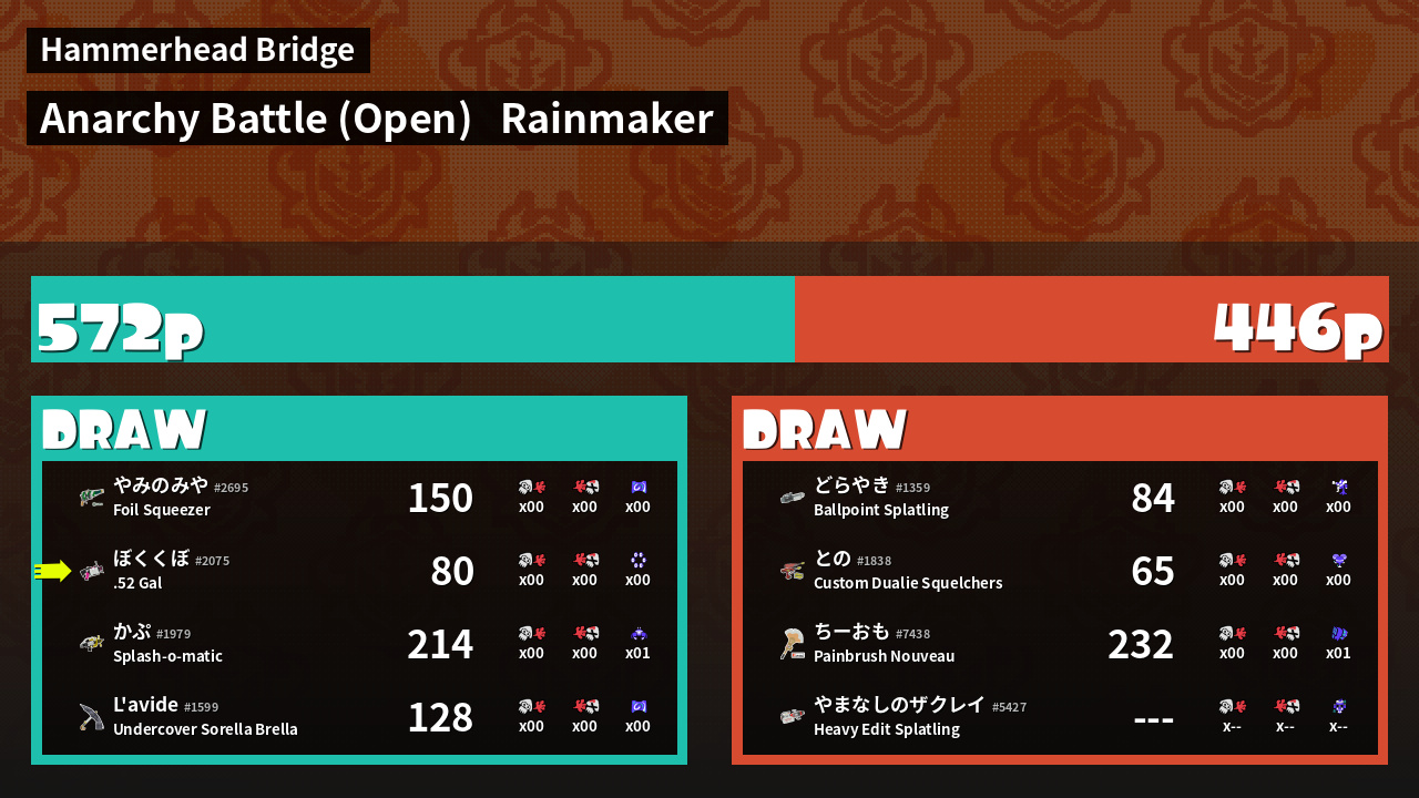 | Mode | Rainmaker - Anarchy Battle (Open) | ||