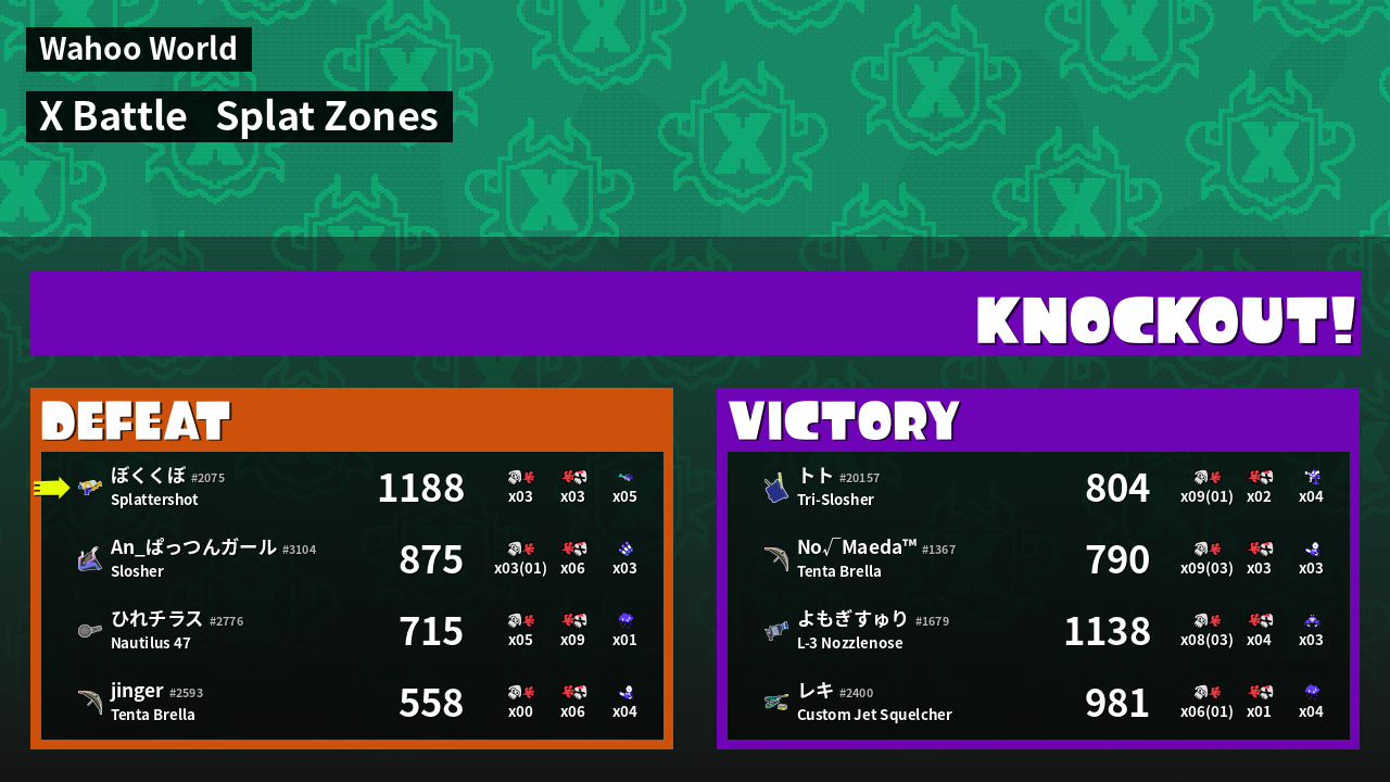 | Mode | Splat Zones - X Battle | ||