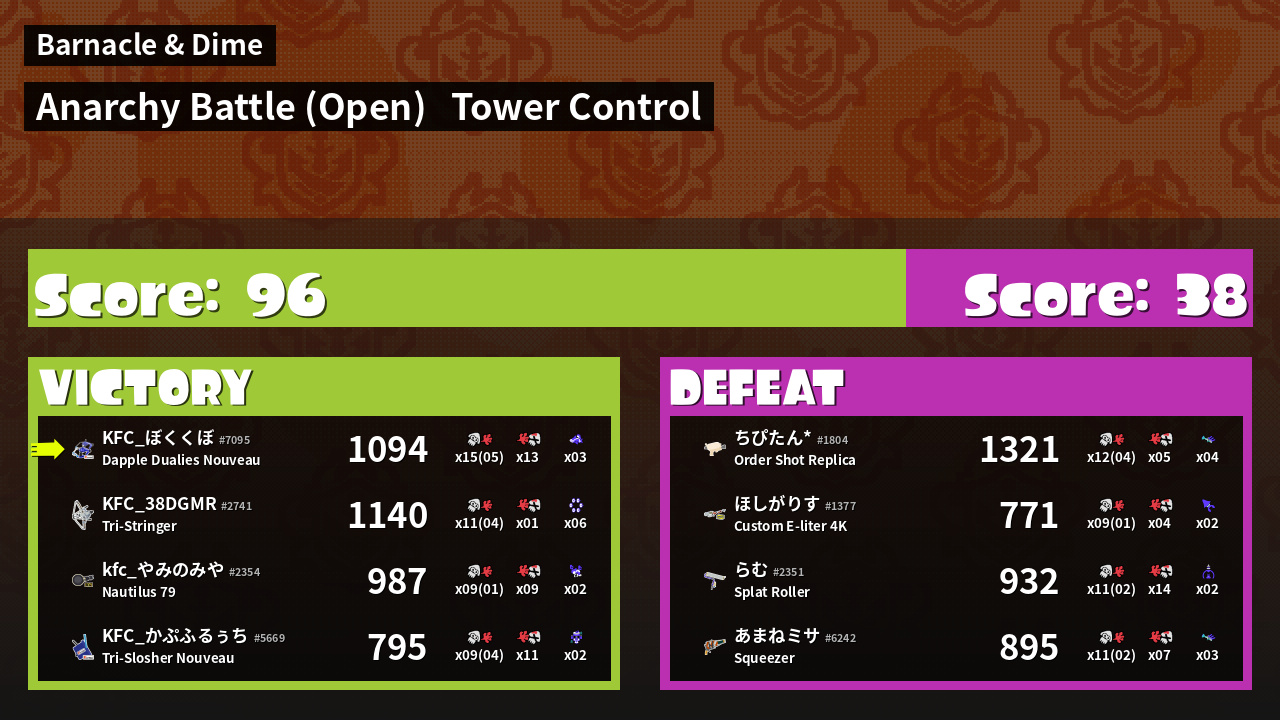 | Mode | Tower Control - Anarchy Battle (Open) | ||