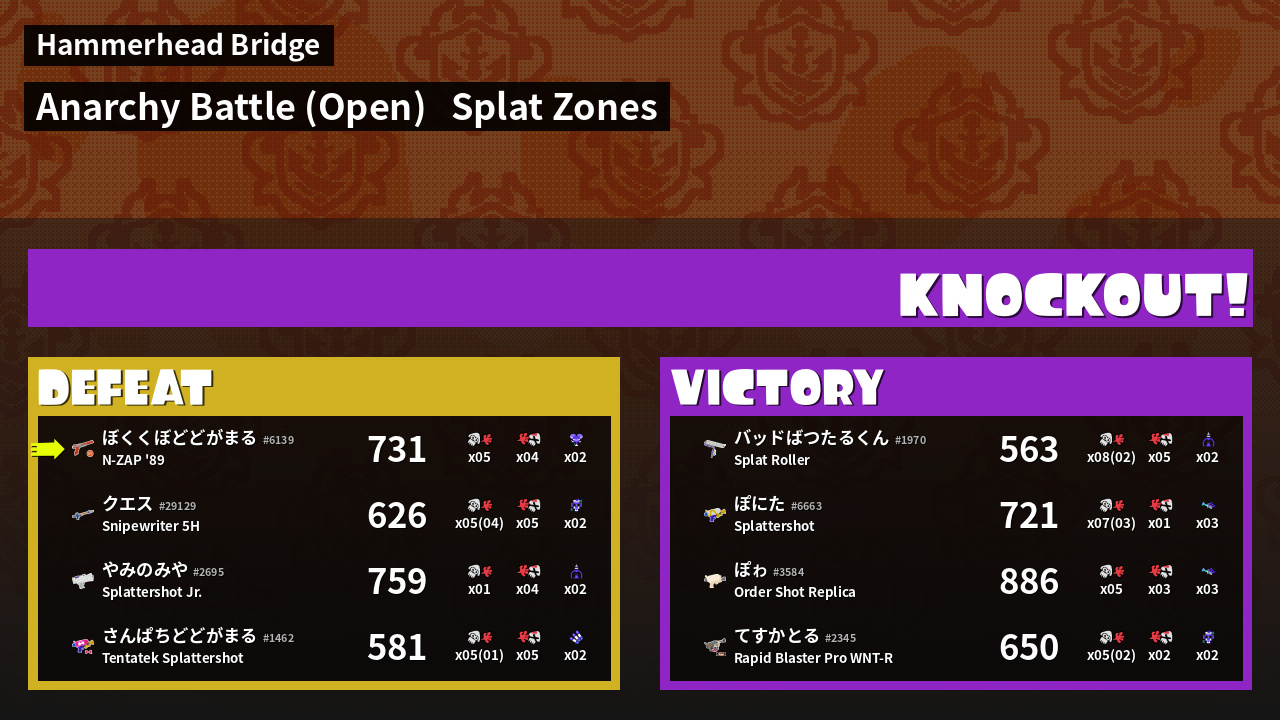 | Mode | Splat Zones - Anarchy Battle (Open) |