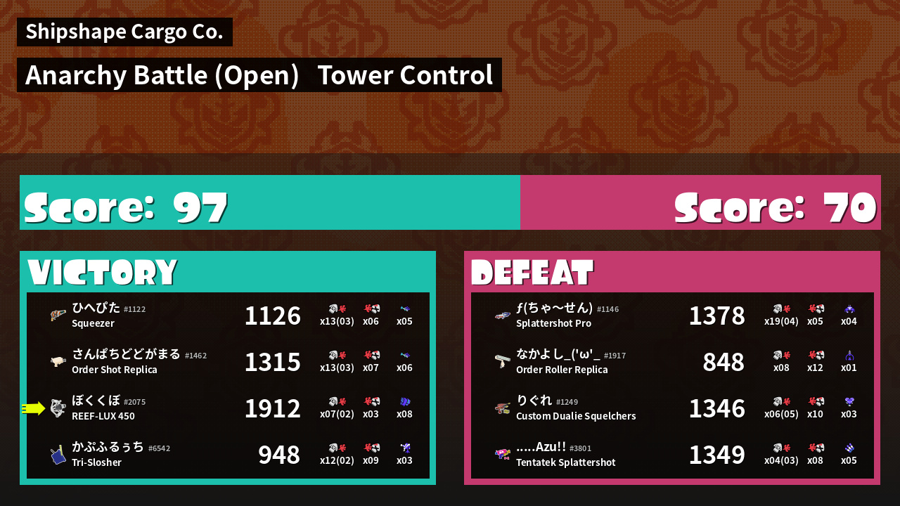 | Mode | Tower Control - Anarchy Battle (Open) | ||
