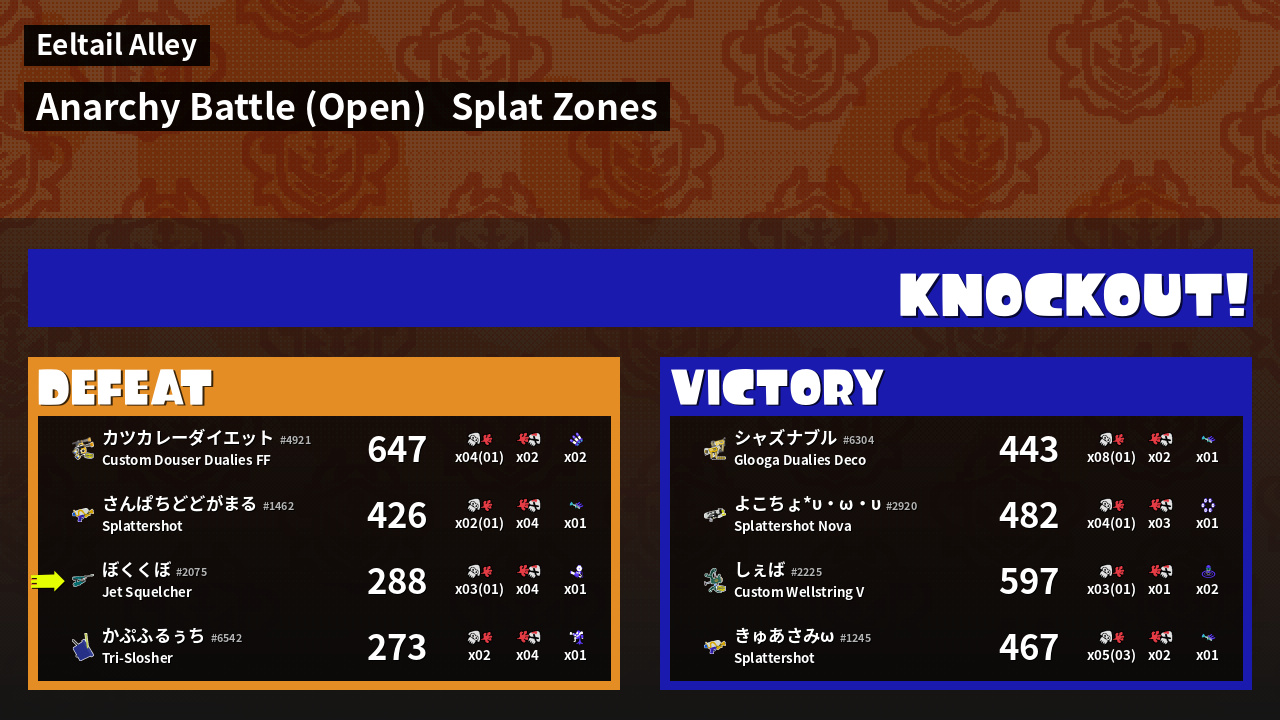| Mode | Splat Zones - Anarchy Battle (Open) | ||