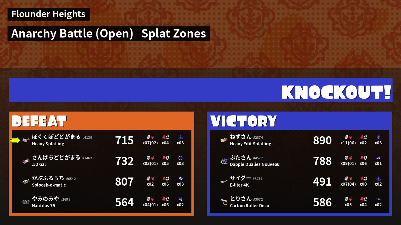 | Mode | Splat Zones - Anarchy Battle (Open) |