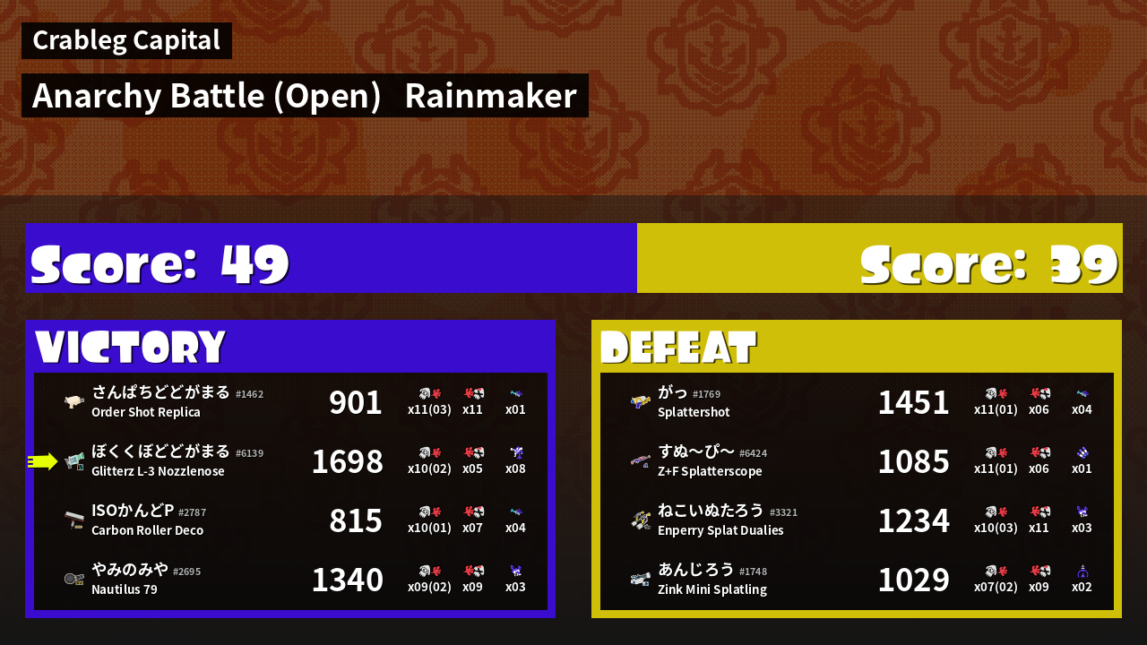 | Mode | Rainmaker - Anarchy Battle (Open) |