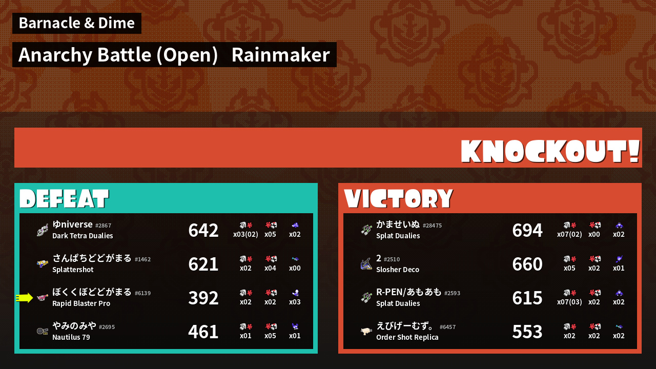 | Mode | Rainmaker - Anarchy Battle (Open) |