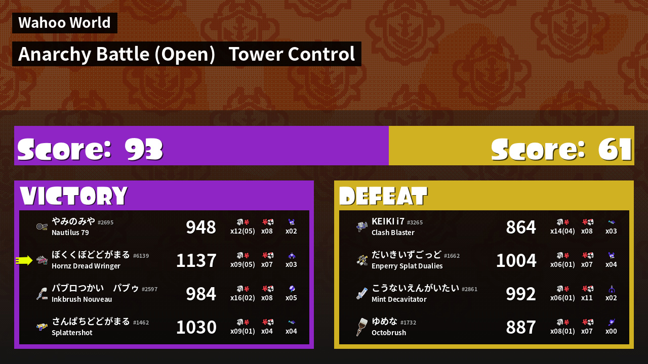 | Mode | Tower Control - Anarchy Battle (Open) |