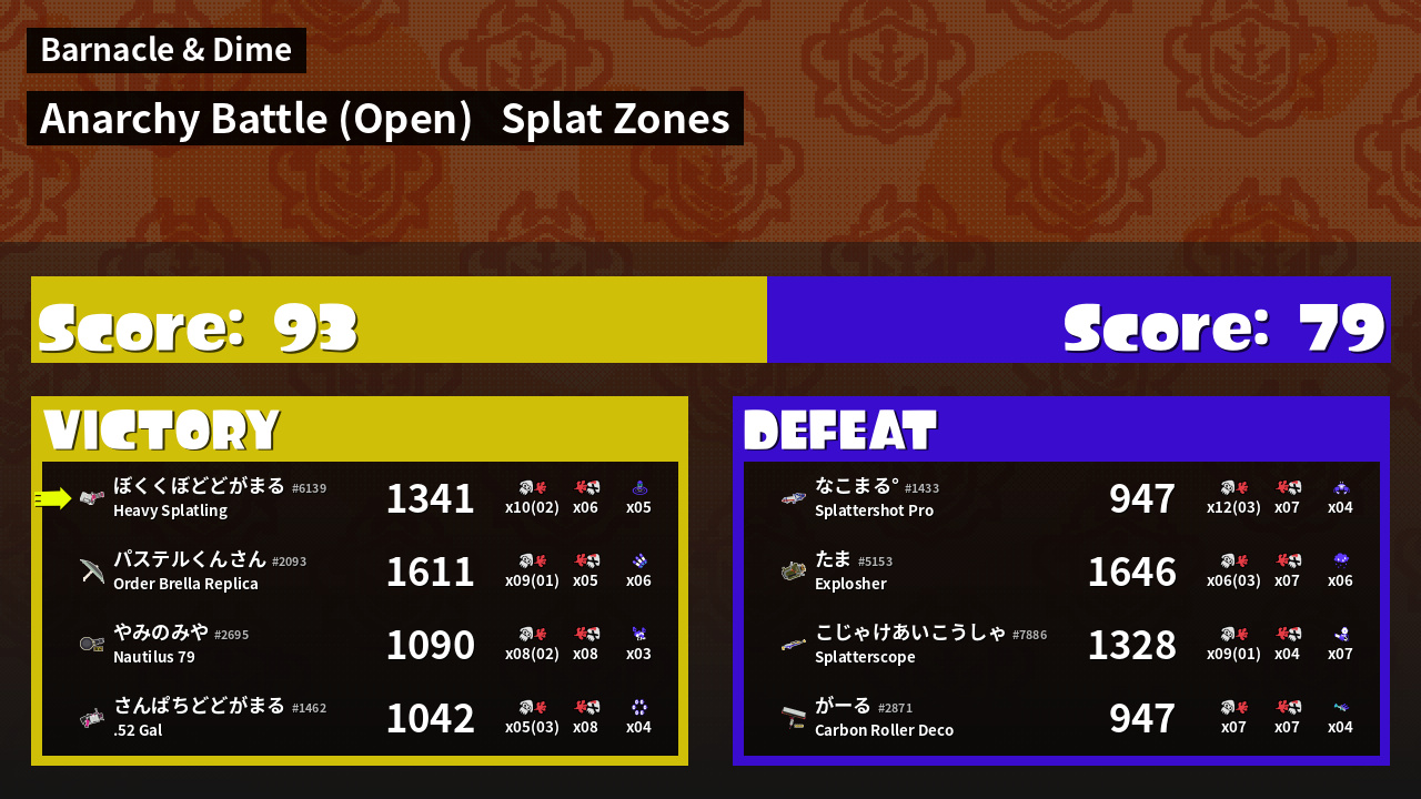 | Mode | Splat Zones - Anarchy Battle (Open) |