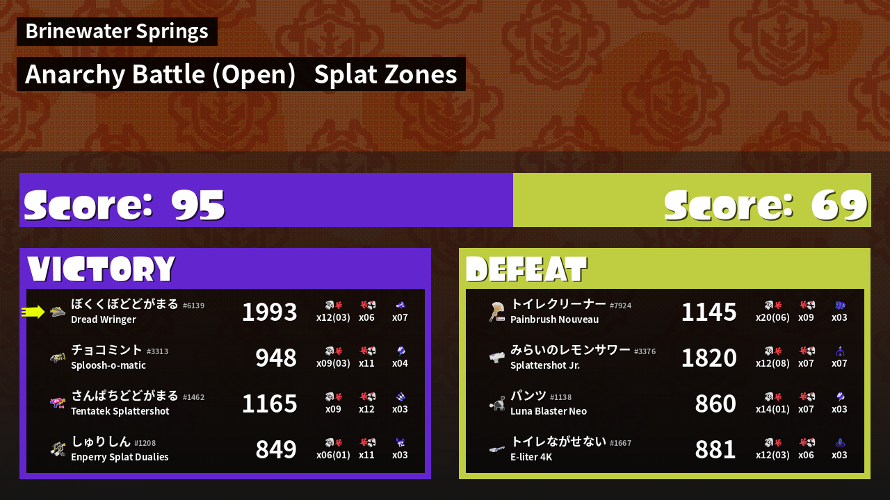 | Mode | Splat Zones - Anarchy Battle (Open) |