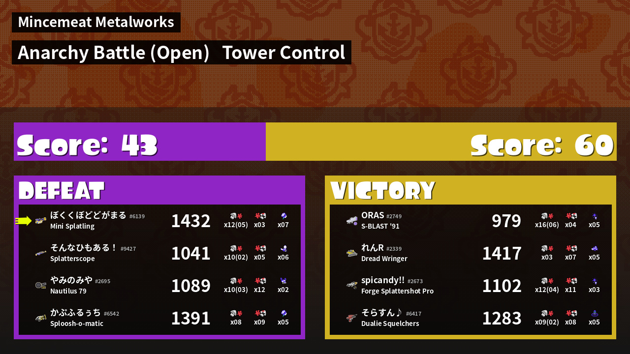 | Mode | Tower Control - Anarchy Battle (Open) |