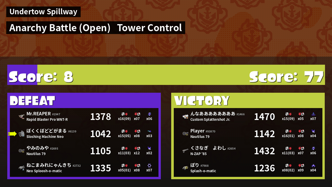 | Mode | Tower Control - Anarchy Battle (Open) |