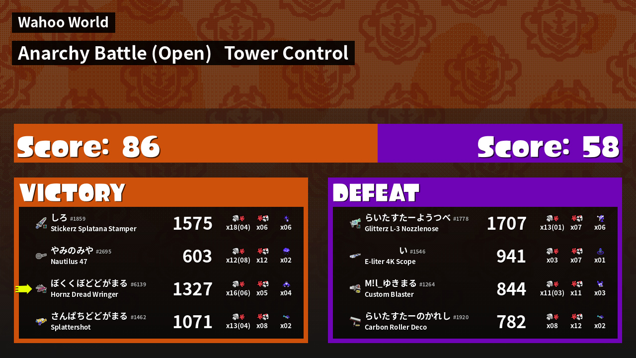 | Mode | Tower Control - Anarchy Battle (Open) |
