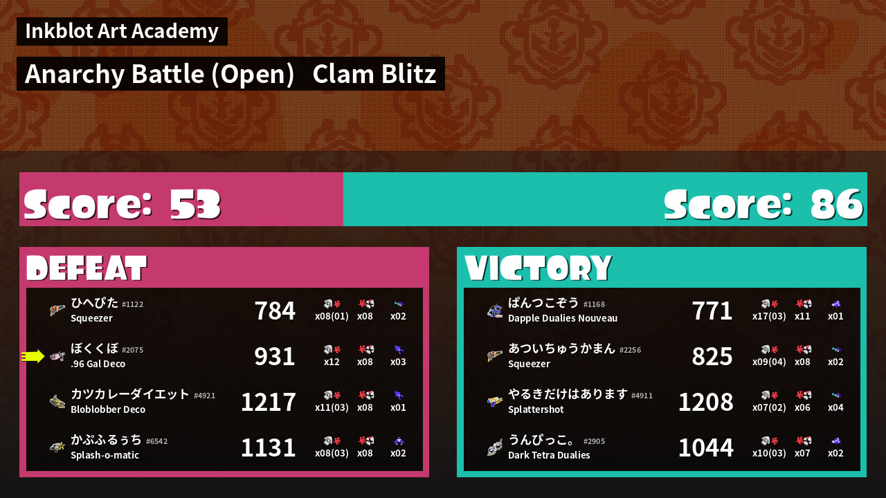 | Mode | Clam Blitz - Anarchy Battle (Open) | ||