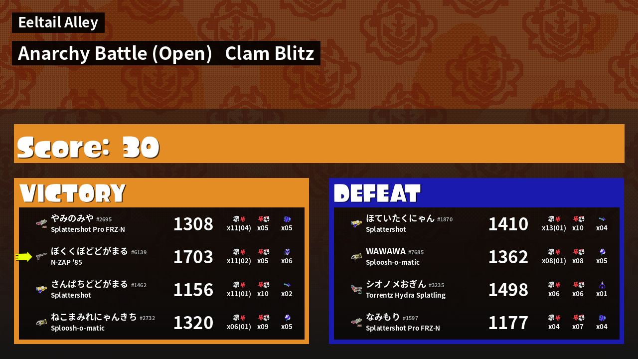 | Mode | Clam Blitz - Anarchy Battle (Open) |