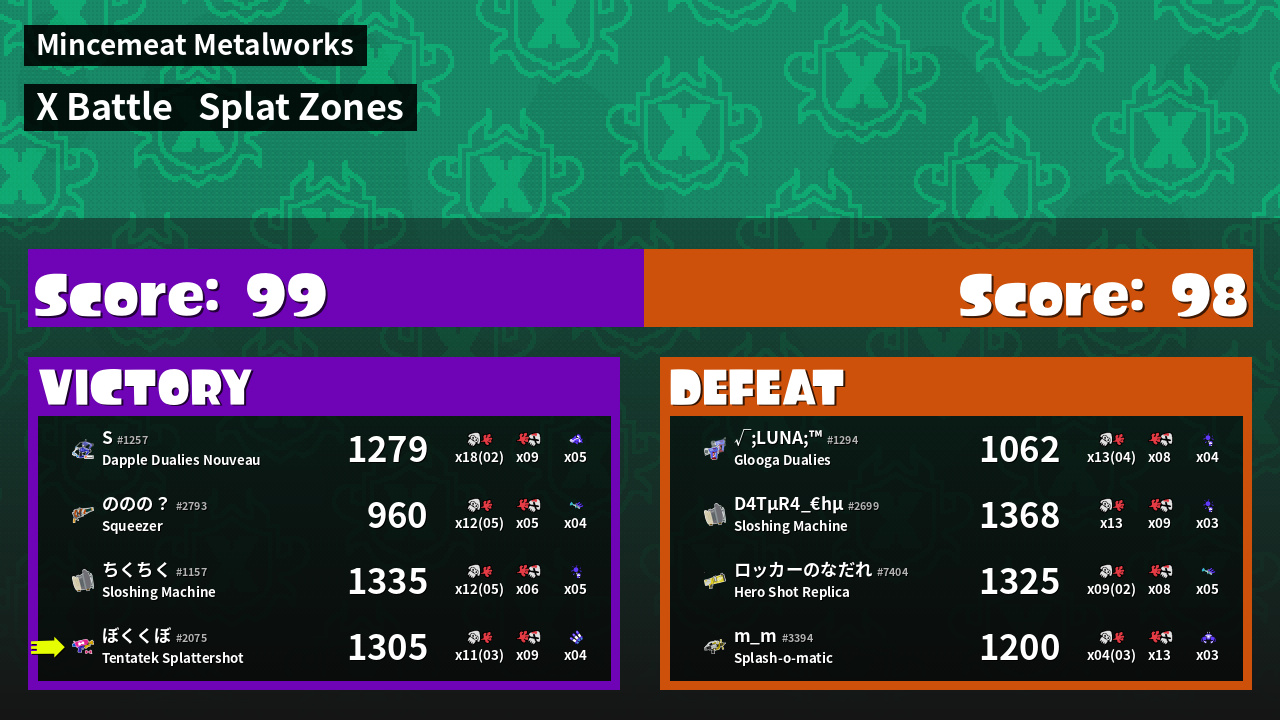 | Medals | #1 Ink Consumer #2 Turf Inker #2 Enemy Splatter | ||