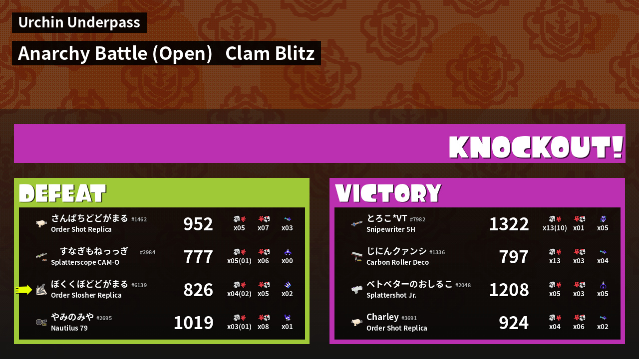 | Mode | Clam Blitz - Anarchy Battle (Open) |