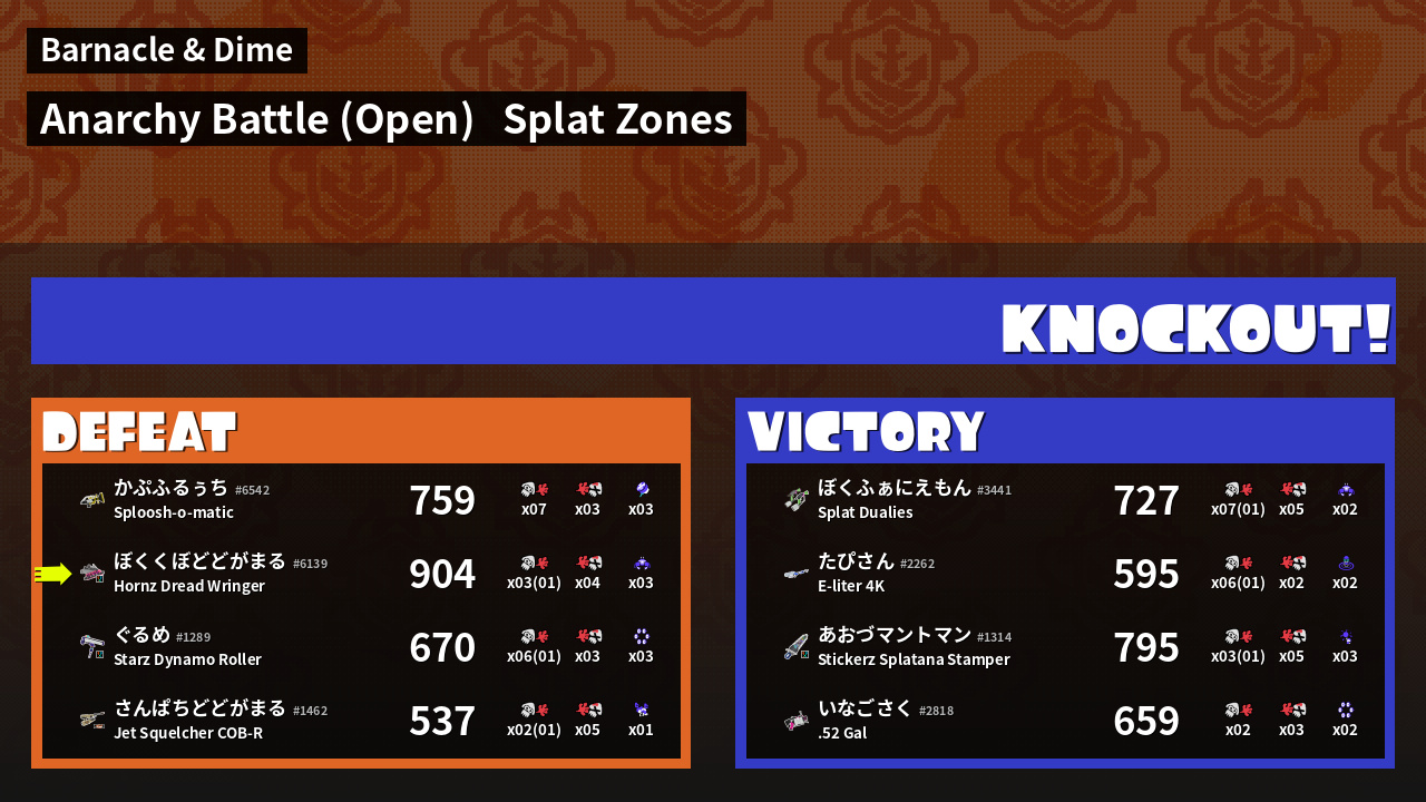 | Mode | Splat Zones - Anarchy Battle (Open) |