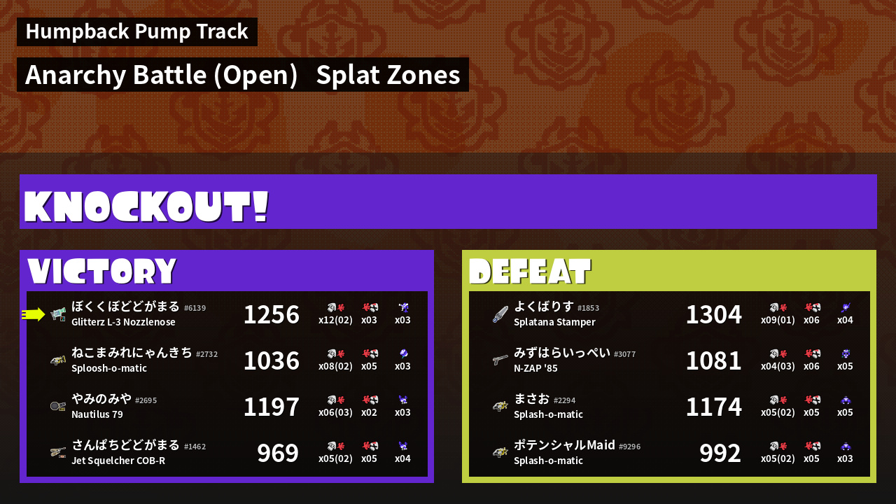 | Mode | Splat Zones - Anarchy Battle (Open) |