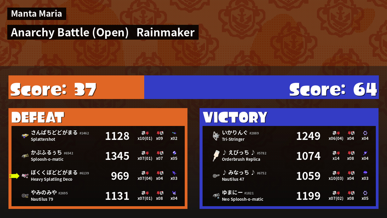 | Mode | Rainmaker - Anarchy Battle (Open) |