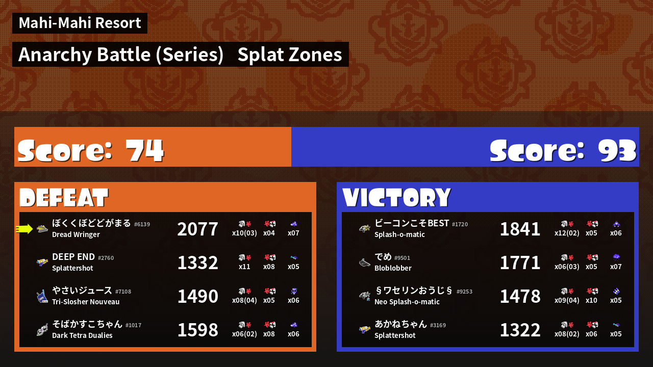 | Mode | Splat Zones - Anarchy Battle (Series) |