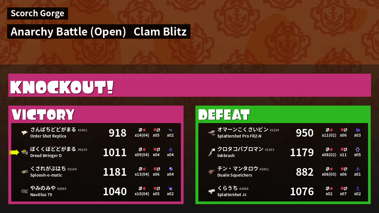 | Medals | #1 Clam Carrier #1 Super Jump Spot #1 Splat Assister |