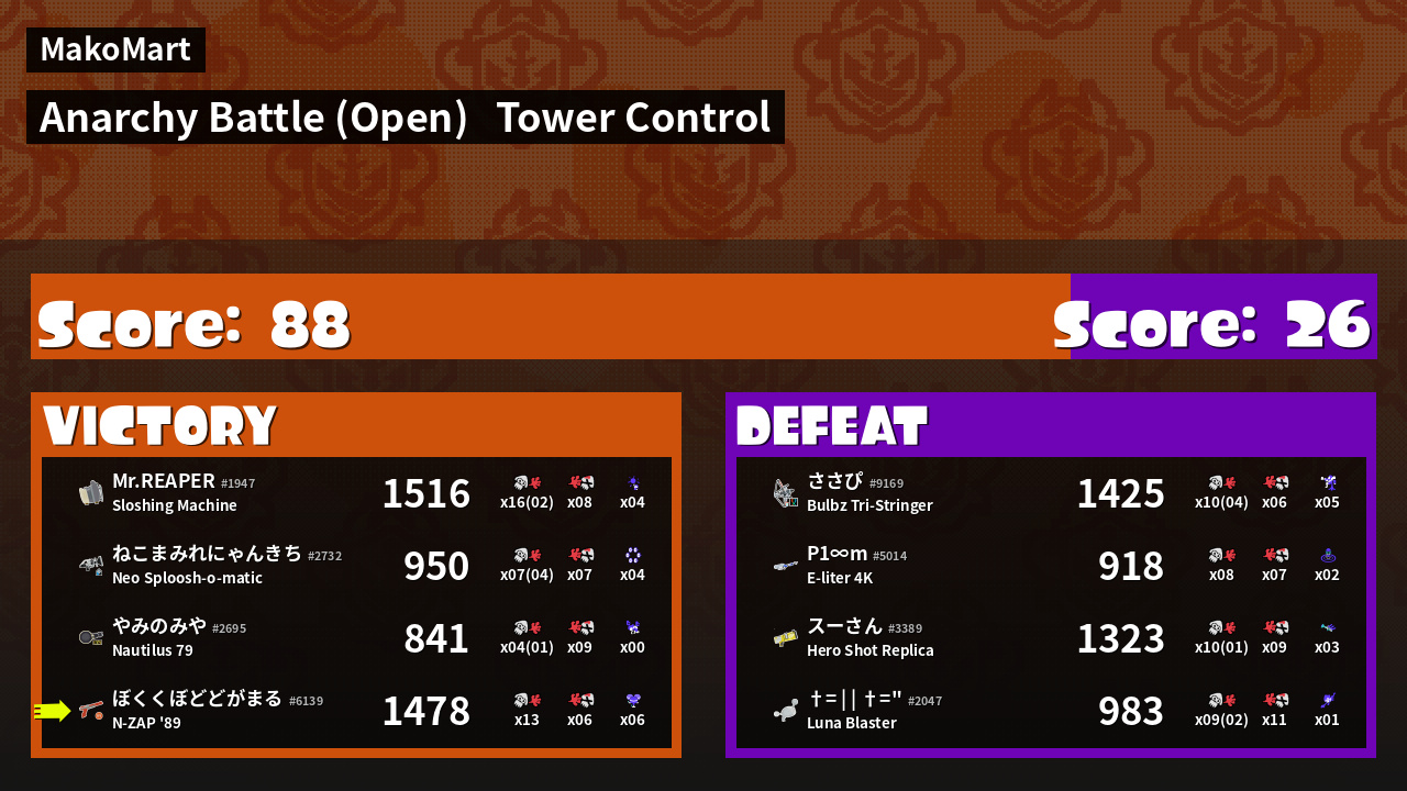 | Mode | Tower Control - Anarchy Battle (Open) |