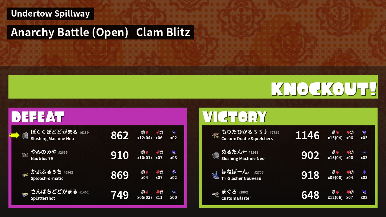 | Mode | Clam Blitz - Anarchy Battle (Open) |