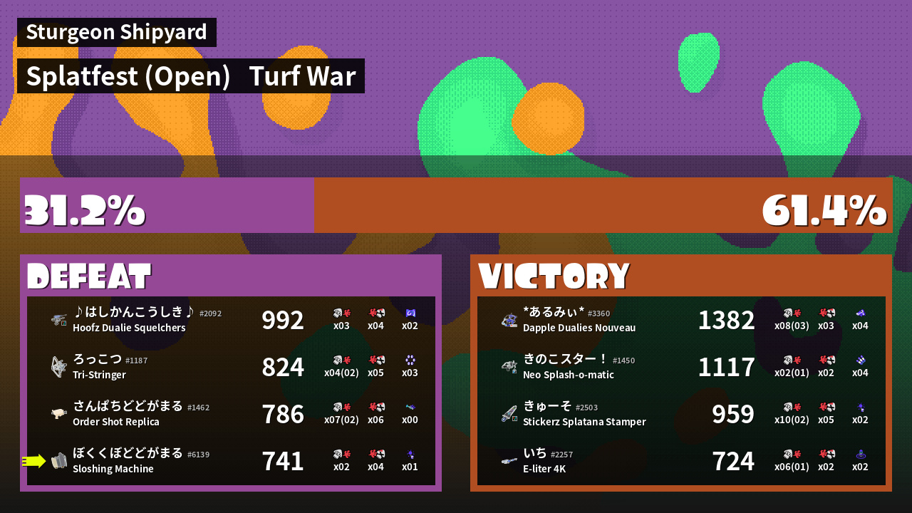 | Medals | #1 Super Jump Spot #1 Damage Taker #1 Ink Consumer |