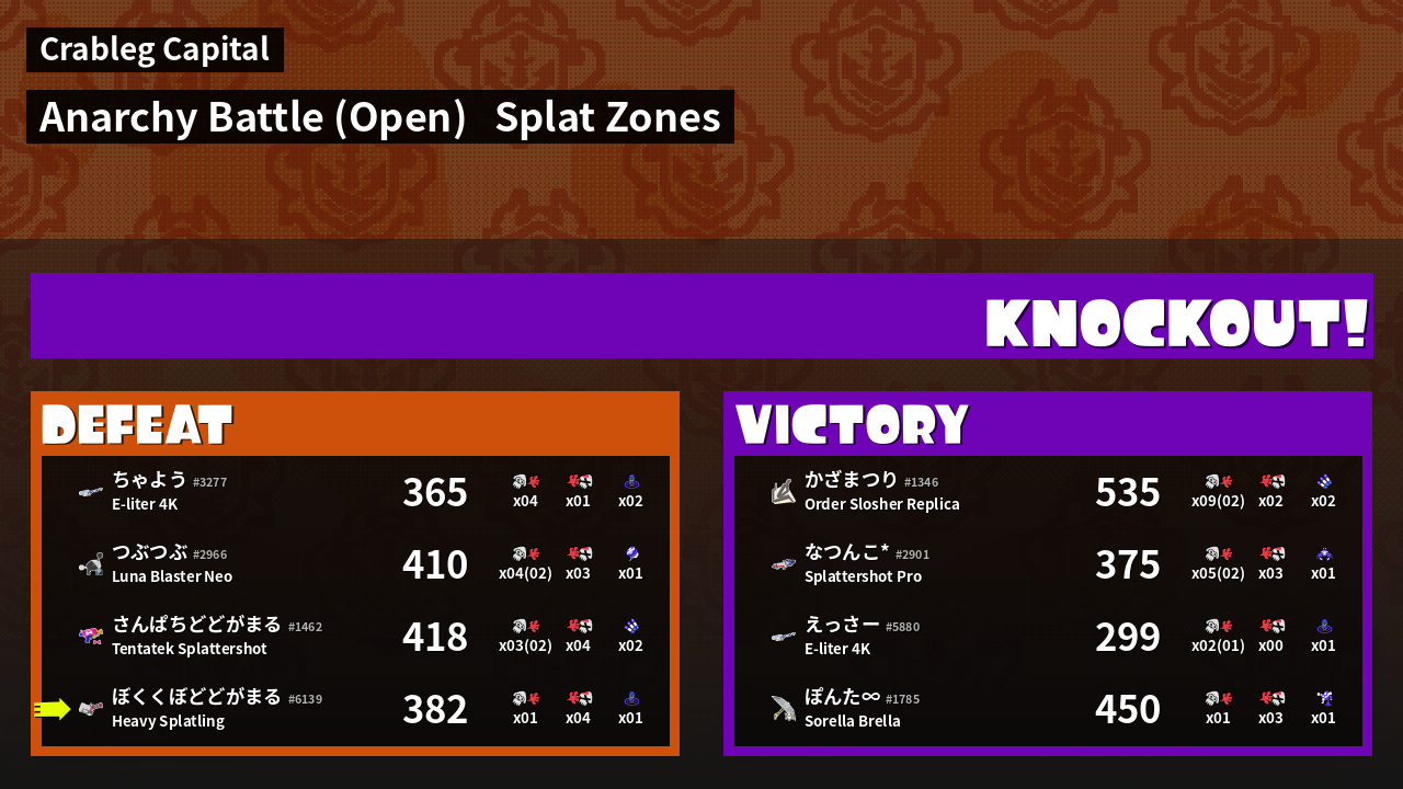 | Mode | Splat Zones - Anarchy Battle (Open) |