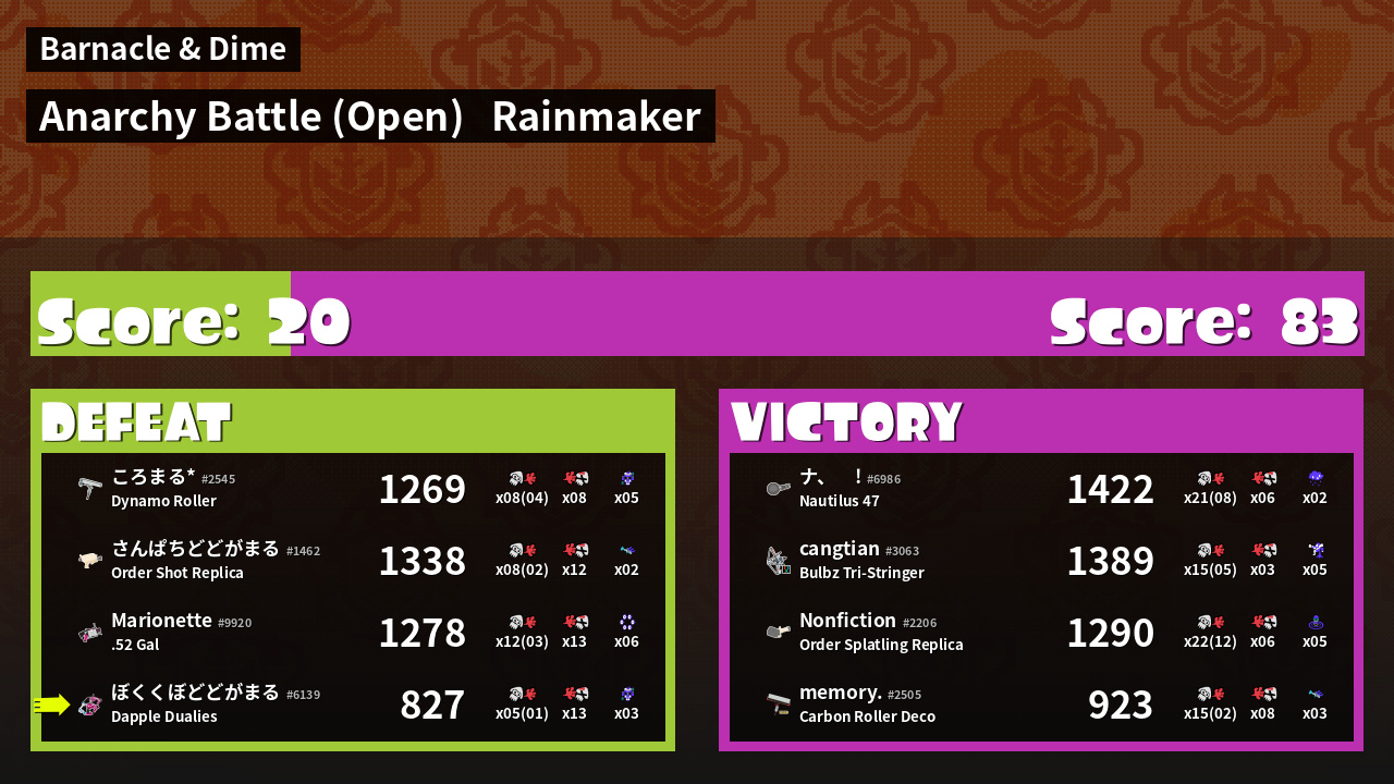 | Mode | Rainmaker - Anarchy Battle (Open) |