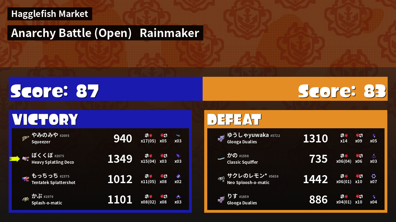 | Mode | Rainmaker - Anarchy Battle (Open) | ||