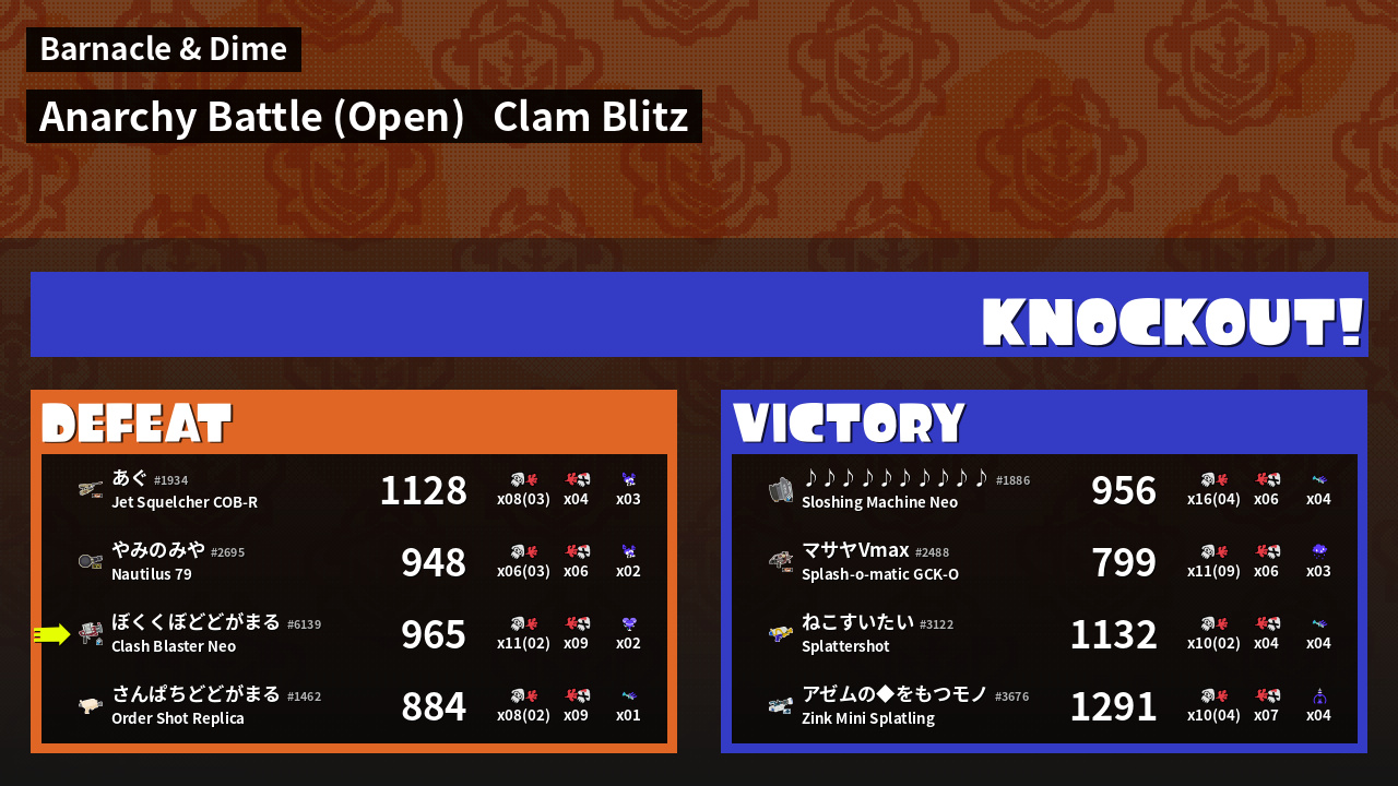 | Mode | Clam Blitz - Anarchy Battle (Open) |