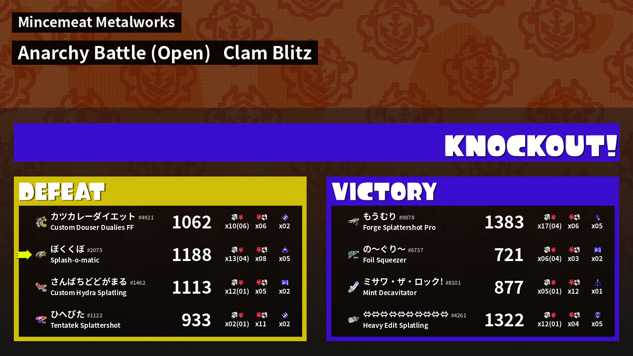 | Mode | Clam Blitz - Anarchy Battle (Open) | ||
