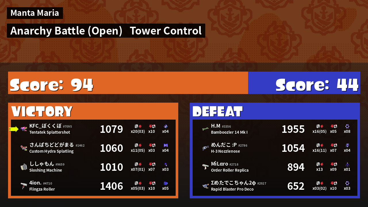 | Mode | Tower Control - Anarchy Battle (Open) | ||