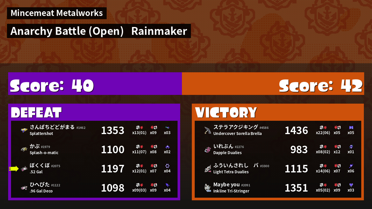 | Mode | Rainmaker - Anarchy Battle (Open) | ||