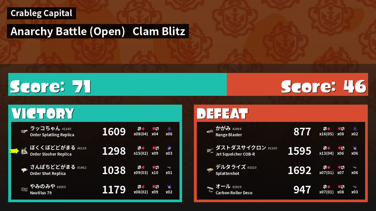| Mode | Clam Blitz - Anarchy Battle (Open) |